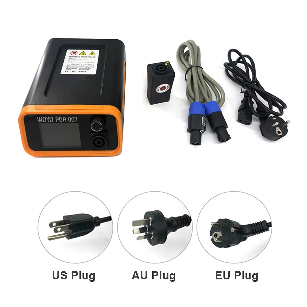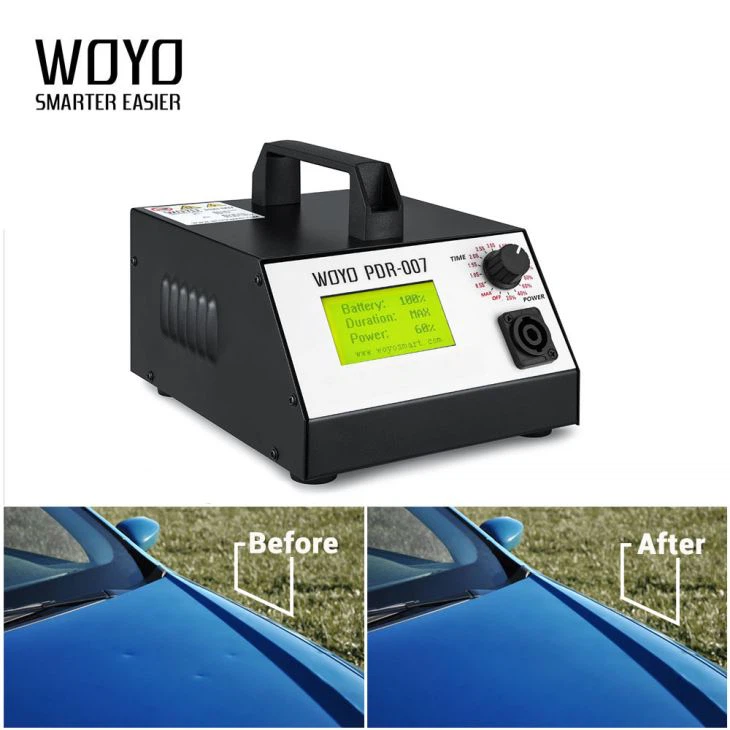 The WOYO PDR007 is a mobile, handheld magnetic induction unit designed for paintless dent removal from panels using rapid, focused heating induction.