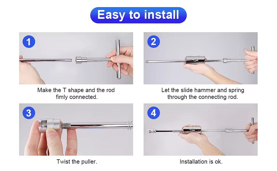 · Two usage options: When utilized as the extended slide hammer, featuring a spring mechanism to alleviate labor, it is ideal for large dents. When functioning as the compact slide hammer, it offers convenience for addressing dents in tight spaces.