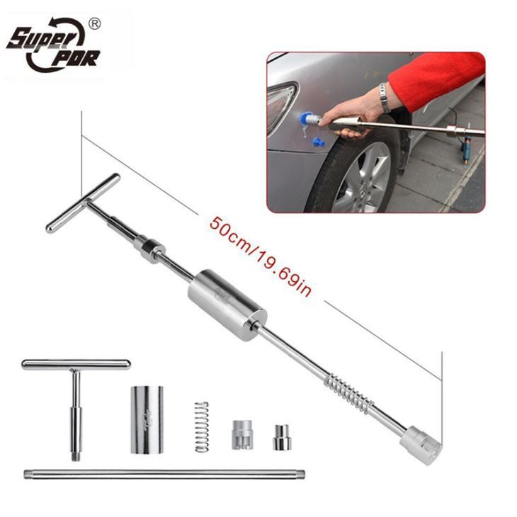 Step two: Use the slide hammer to repair the big dent, then use the dent lifter to repair the small dent and the pulling bridge to repair the small dent.